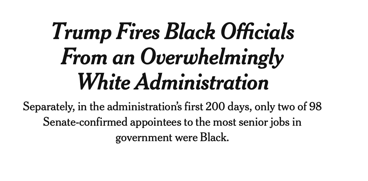 The immediate and most widespread answer to the first question is that the Trump administration is avowedly racist - and unashamedly pursues attacks on black and brown people as this New York Times story (08/10/2025) shows: