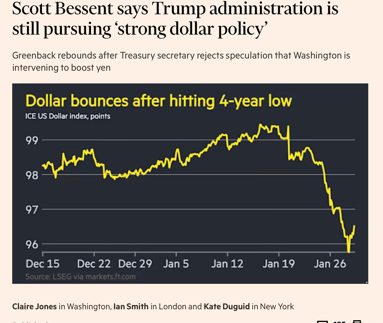 On the one hand Treasury Secretary Bessent boasts of a “strong dollar policy” - while on the other Trump and his economic adviser, Stephen Miran have set out to deliberately weaken the US currency , as I explained here. Confident of the power of the US economy and convinced the rest of the world has no choice but to back the dollar, they’re messing with it - and generating financial volatility and instability.